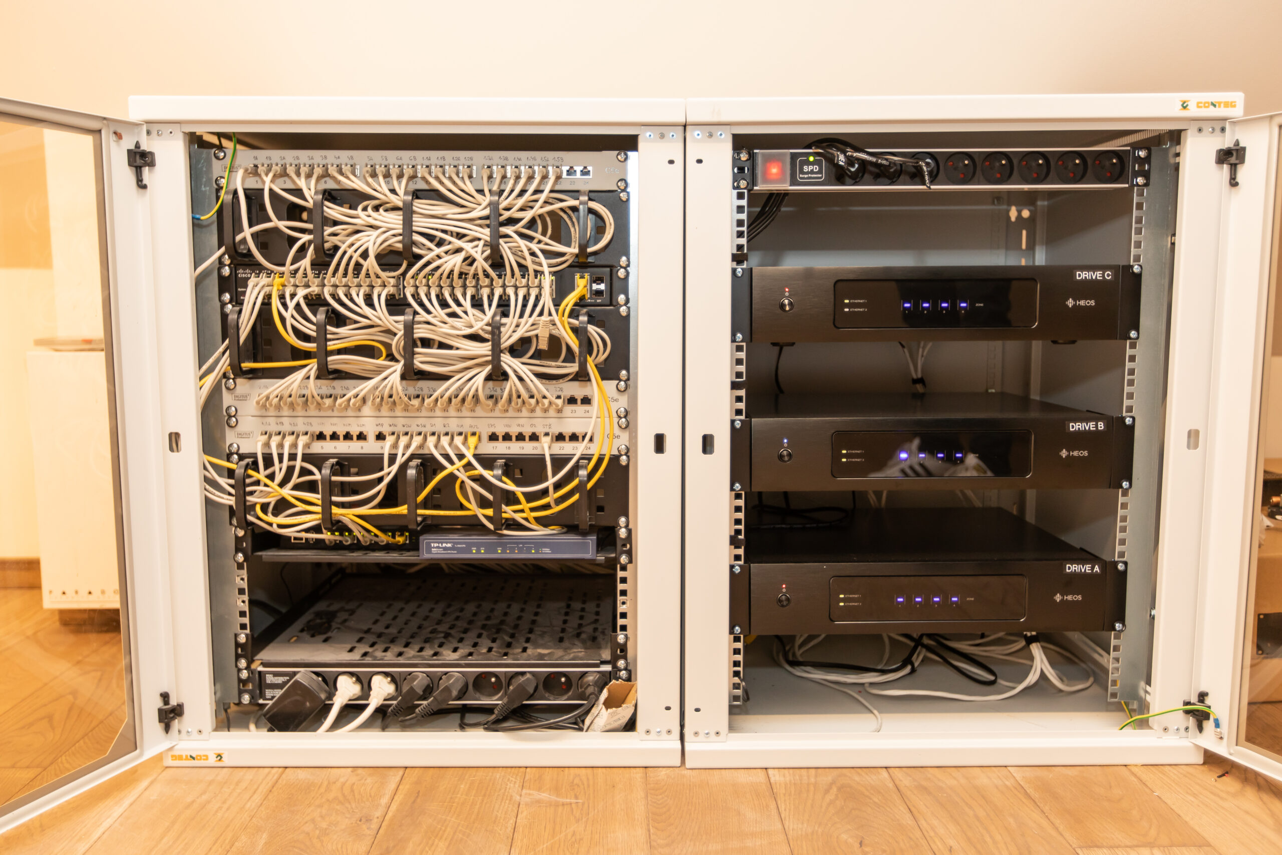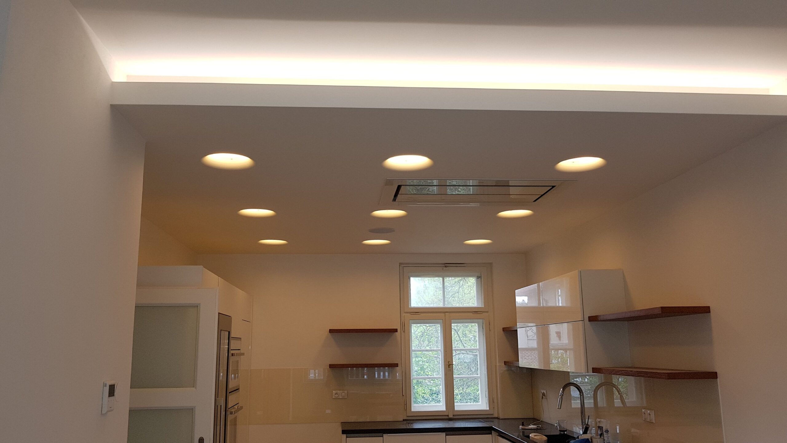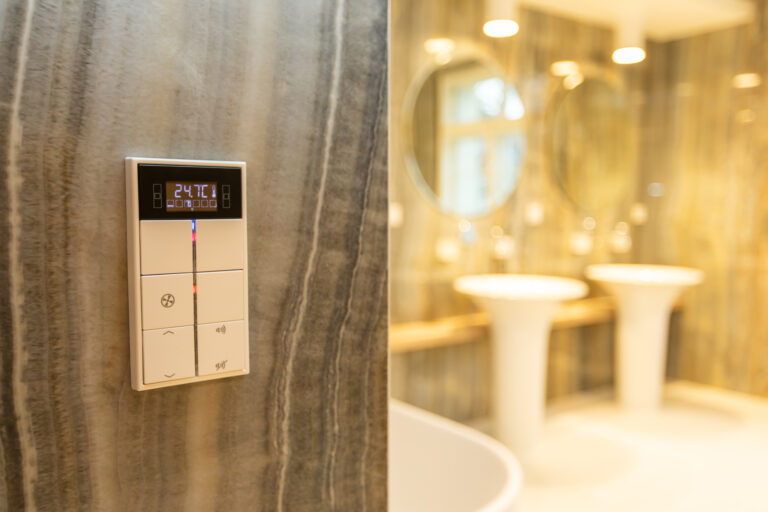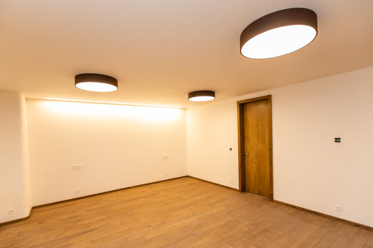 Komplexní realizace nadstandardní elektroinstalace s plně integrovaným systémem inteligentního řízení objektu na bázi standardu KNX. Řešení zajišťuje centrální řízení veškerých technologií domu, včetně osvětlení, vytápění, kuchyňských spotřebičů, zabezpečovacího systému a ozvučení celého objektu. Součástí dodávky byly rovněž kompletní silnoproudé a slaboproudé rozvody včetně jejich integrace do jednotného řídicího systému.